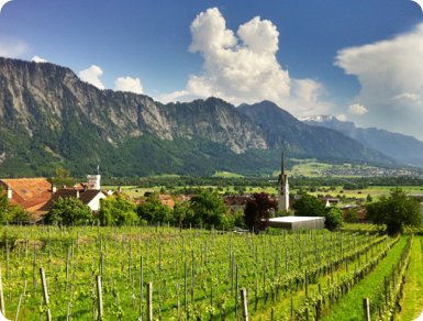 Our house is located in the Grisons in a region we call the Herrschaft. We are surrounded by vineyards, from which some famous wines are produced.